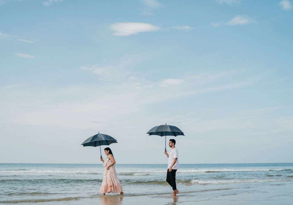 Elegant couple portraits set against Goa’s scenic beaches